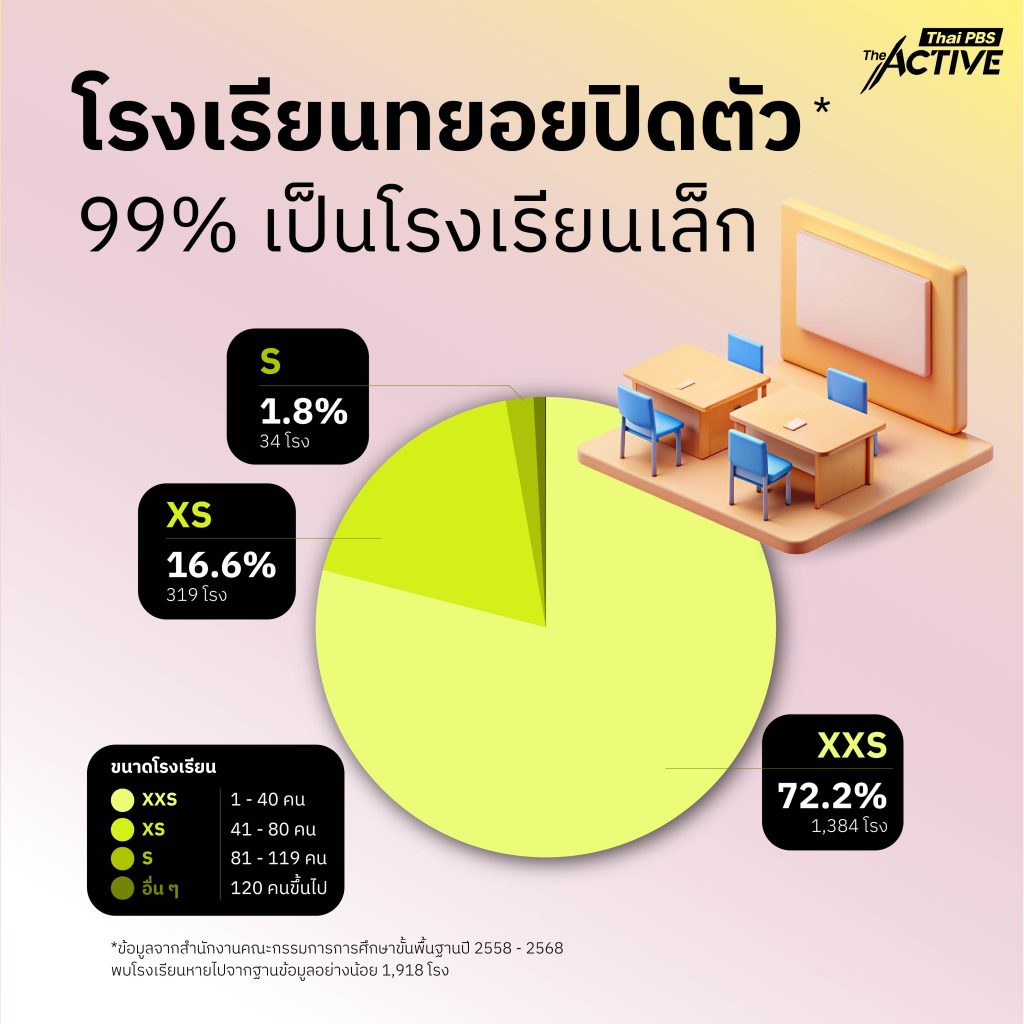 กว่า 99% ของโรงเรียนที่ปิดตัวลงคือโรงเรียนขนาดเล็ก