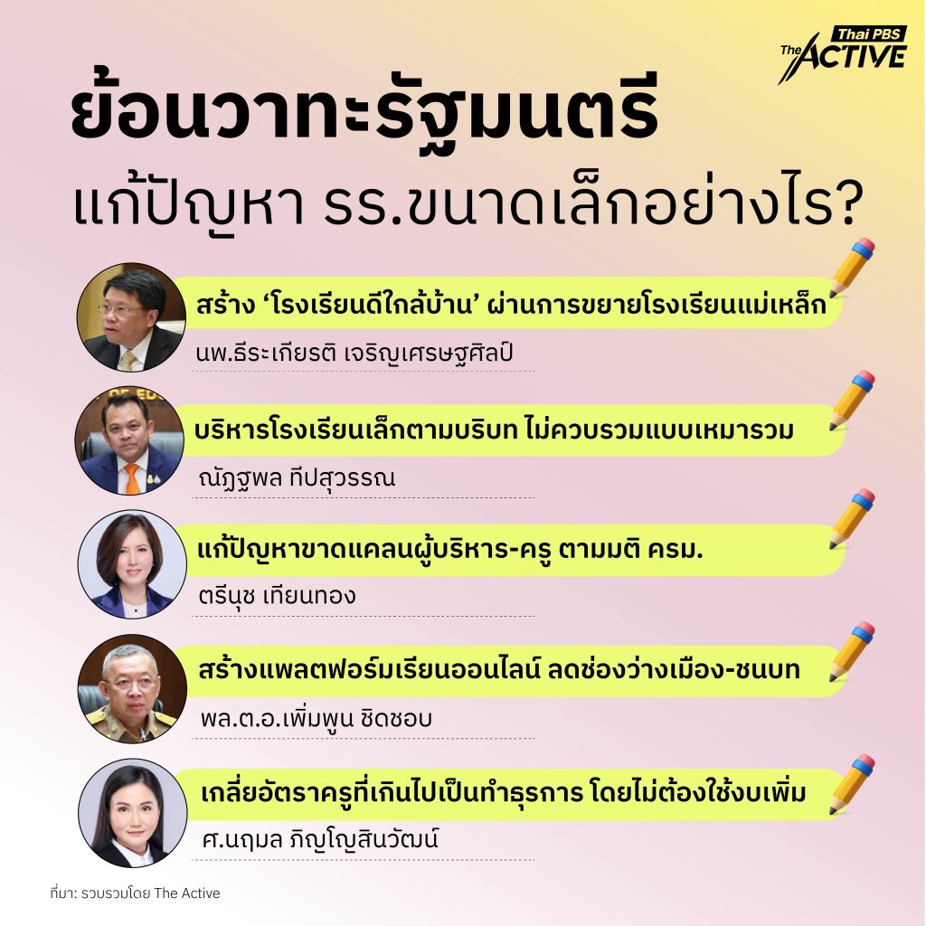 แม้หลายรัฐบาลและหลายรัฐมนตรีจะพยายามออกมาตรการแก้ไข ทั้งการรวมโรงเรียน การสนับสนุนโรงเรียนแม่เหล็กเพื่อดึงดูดนักเรียน การจัดสรรอัตราครูใหม่ และการสร้างแพลตฟอร์มการเรียนออนไลน์ให้เด็กเข้าถึงแหล่งเรียนรู้คุณภาพอย่างเท่าเทียมกัน ความพยายามเหล่านี้กลับยังไม่สามารถแก้ปัญหาได้อย่างแท้จริง ส่งผลให้ในปี 2568 โรงเรียนขนาดเล็กหลายแห่งยังคงประสบปัญหาครูไม่ครบชั้น นักเรียนลดลง และความเหลื่อมล้ำทางการศึกษาทวีความรุนแรงมากขึ้น ชวนย้อนดูแนวทางการแก้ไขปัญหาของ 5 รัฐมนตรีศึกษาธิการต่อปัญหาโรงเรียนขนาดเล็ก