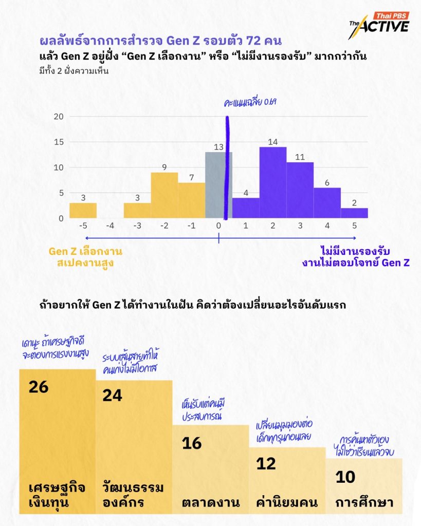ธี ในฐานะผู้ร่วมตอบแบบสอบถาม ก็มองเห็นปัญหาของ Gen Z ที่ก็มีสเปกงานที่สูง และก็เห็นปัญหาในตลาดแรงงานเช่นกัน