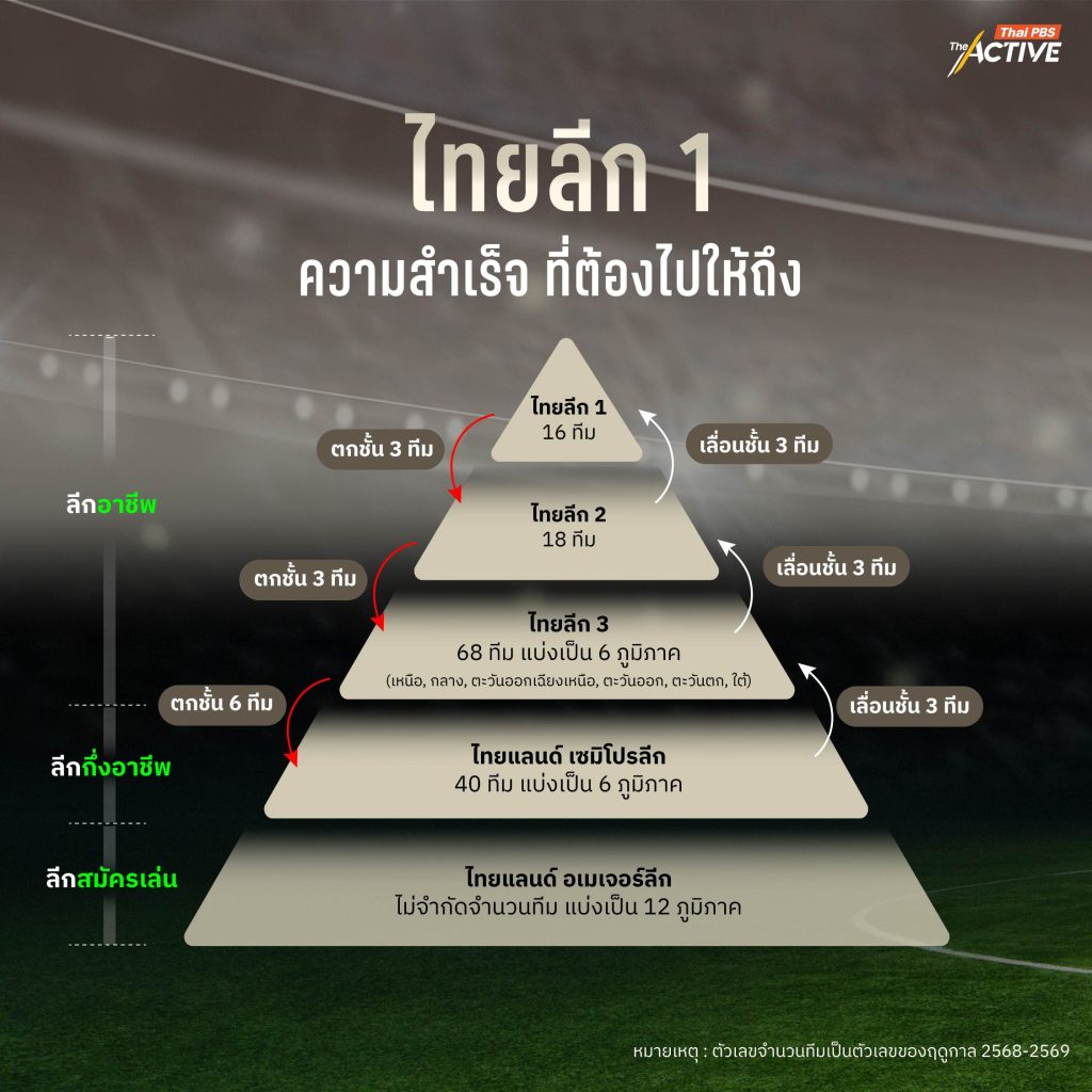 การจะหาคำตอบเรื่องนี้ อาจต้องเริ่มจากการทำความเข้าใจ โครงสร้างฟุตบอลอาชีพไทย เสียก่อน ว่าประตูสู่ลีกสูงสุดนั้นยากเพียงใด ?