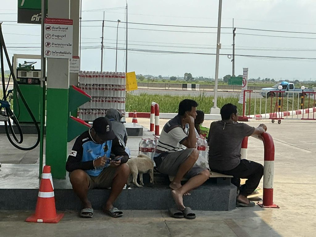 ท่ามกลางไอร้อนที่ระอุขึ้นจากพื้นลาดยางหน้าปั๊มน้ำมัน ในอำเภอบางบาล จ.พระนครศรีอยุธยา รถยนต์ รถบรรทุก รถกระบะบรรทุกแกลอนจำนวนมากต่างมารอคิวรอซื่อน้ำมัน ที่ต้องลุ้นว่าจะได้น้ำมันไปใส่เครื่องสูบน้ำเพื่อนำน้ำเข้านาที่อยู่ในช่วงข้าวกำลังตั้งท้องได้หรือไม่