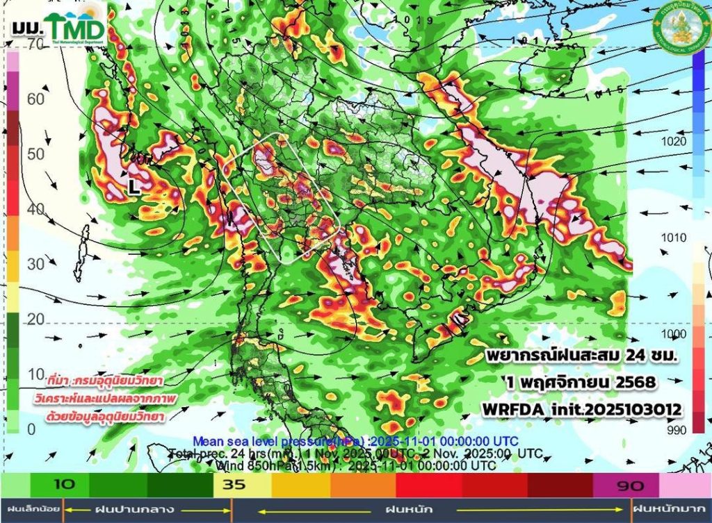 ฝนจะตกหนัก 1-2 พฤศจิกายน 2568