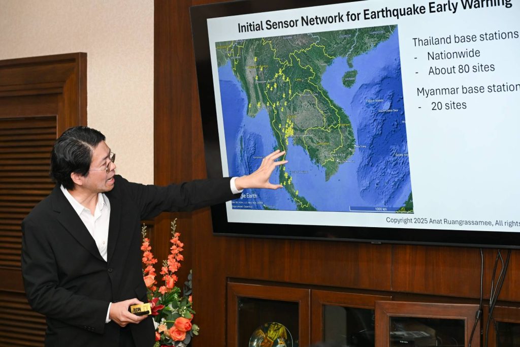 ศ.อาณัติ เรืองรัศมี ภาควิชาวิศวกรรมโยธา ศูนย์เชี่ยวชาญเฉพาะทางด้านวิศวกรรมแผ่นดินไหวและการสั่นสะเทือน คณะวิศวกรรมศาสตร์ จุฬาฯ และกรรมการ บริษัท รู้ก่อน จำกัด เผยกับ The Active ว่า จากเหตุการณ์แผ่นดินไหวครั้งที่ผ่านมาจะเห็นว่ามีผลกระทบต่อกรุงเทพมหานครเป็นวงกว้าง จริงๆ แล้วแผ่นดินไหวจะมาถึงกรุงเทพเดินทางด้วยความเร็วประมาณ 3 กิโลเมตรต่อวินาที หากเรารู้ล่วงหน้าหรือรู้ก่อนว่าจะมาถึงกรุงเทพฯ จะสามารถเตือนภัยล่วงหน้าได้ ซึ่งจะมีเวลาประมาณ 3-4 นาที โดยเครื่องมือจะต้องถูกนำไปติดตั้ง จุดติดตั้งกระจายไปทั่วพื้นที่ ก่อนหน้านี้ได้รับความร่วมมือจาก บริษัท บางจากคอร์ปอเรชั่น นำไปติดตั้งที่สถานีบริการน้ำมันทั่วประเทศ และมีการเดินหน้าพัฒนาเทคโนโลยีเพื่อทำให้เซนเซอร์ติดตั้งง่ายและทำงานอย่างมีเสถียรภาพ