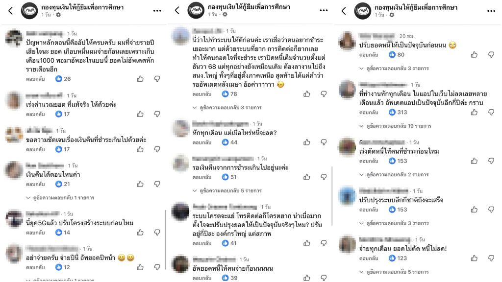 อย่างไรก็ตาม ได้มีประชาชนที่คาดว่าเป็นลูกหนี้ กยศ. เข้าไปแสดงความคิดเป็นในเพจเฟซบุ๊กจำนวนมาก เนื่องจากพบปัญหาการใช้ในงานระบบ โดยบางรายระบุว่า หลังจากชำระเงินแล้วไม่พบข้อมูลปรากฏขึ้นในระบบออนไลน์ และบางส่วนยังระบุว่าชำระเงินจนครบหมดแล้ว แต่ กยศ. ก็ยังมีการส่งแจ้งเตือนให้ไปชำหนี้อยู่