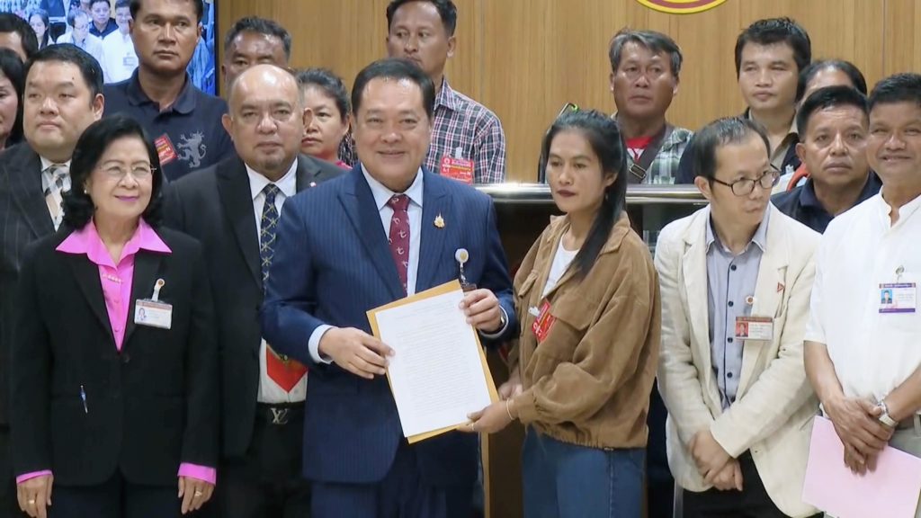 ยื่นหนังสือต่อ พ.ต.อ. ทวี สอดส่อง ประธานกรรมาธิการวิสามัญพิจารณาร่างพระราชบัญญัตินิรโทษกรรมแก่ราษฎร ซึ่งได้รับความเสียหายหรือได้รับผลกระทบจากการดำเนินการตามนโยบายของรัฐด้านที่ดินและทรัพยากรธรรมชาติพ.ศ. … เลาฟั้ง บัณฑิตเทอดสกุล และ ซูการ์โน มะทา ในฐานะรองประธานคณะกรรมาธิการฯ