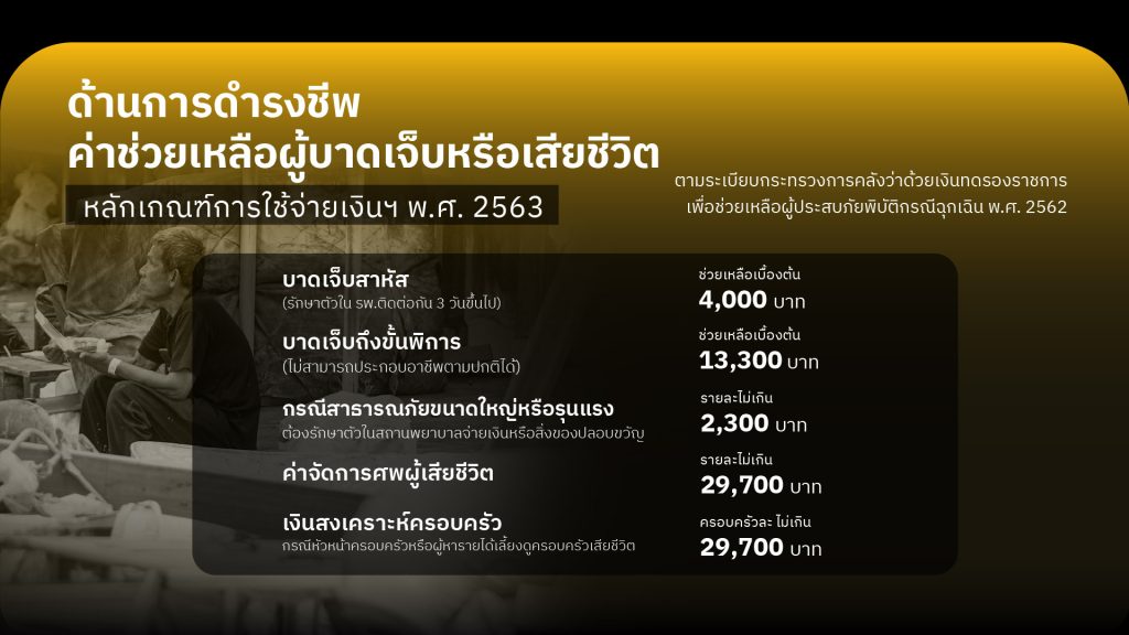 การดำรงชีพ ค่าช่วยเหลือผู้บาดเจ็บหรือเสียชีวิต มีดังนี้