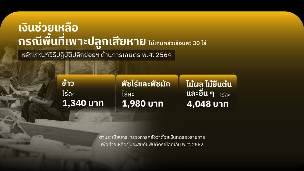 - เงินช่วยเหลือกรณีพื้นที่เพาะปลูกเสียหาย