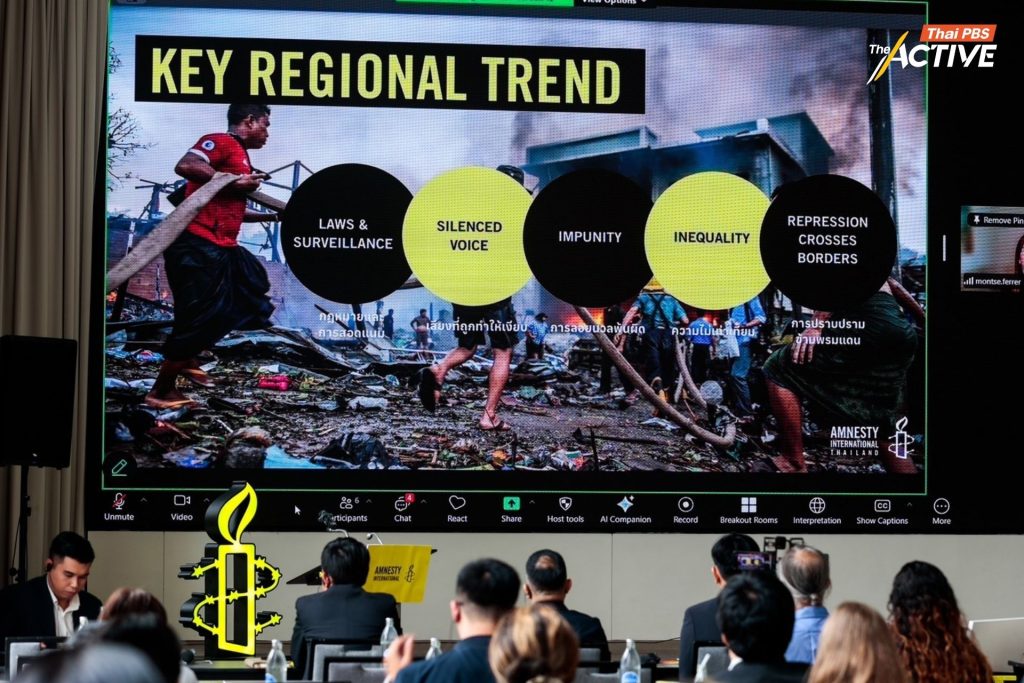 แอมเนสตี้ฯ เปิดรายงานสถานการณ์สิทธิมนุษยชนทั่วโลก ประจำปี 2568/69 ชี้ ไทยเผชิญข้อจำกัดด้านสิทธิเสรีภาพการแสดงออก, นักปกป้องสิทธิ, การทรมาน, สิทธิผู้ลี้ภัย-ผู้อพยพ, สิทธิชนเผ่าพื้นเมือง, สิทธิในสิ่งแวดล้อมที่ดี เสนอแก้ปัญหาเชิงโครงสร้างด้านสิทธิมนุษยชน ให้สอดคล้องกับพันธกรณีระหว่างประเทศ ปกป้องสิทธิพลเมือง สิทธิทางการเมือง สร้างสังคมเป็นธรรม ยั่งยืน