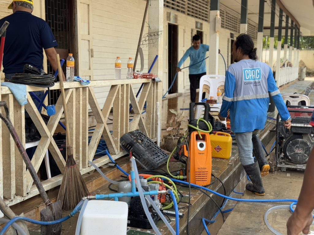 วันนี้ (5 ธ.ค. 68) อาสาสมัครจากหลายหน่วยงานเร่งช่วยกันทำความสะอาด โต๊ะ เก้าอี้ และ อุปกรณ์สำนักงาน ของโรงเรียนบ้านท่าไทร ตำบลคลองแห อ.หาดใหญ่ จ.สงขลา หลังได้รับผลกระทบจากสถานการณ์น้ำท่วม เพื่อเตรียมความพร้อมเข้าสู่การเปิดการเรียนการสอนในวันจันทร์ ที่ 8 ธันวาคมนี้