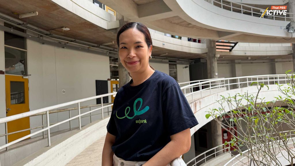 แพรวพร สุขัษเฐียร จาก Jaibaan Studio (ใจบ้านสตูดิโอ) กล่าวในการเสวนา การพัฒนาพื้นที่สีเขียวสุขภาวะ อย่างมีส่วนร่วมว่า เวลาพูดถึงการพัฒนาพื้นที่สีเขียวหรือพื้นที่สุขภาวะ จริง ๆ แล้วคนหนึ่งคนมีหลายบทบาทในชีวิต ทั้งในฐานะสมาชิกครอบครัว เพื่อนร่วมงาน ลูกค้า หรือผู้ให้บริการในวิชาชีพของตัวเอง ซึ่งแต่ละบทบาทล้วนมีความสัมพันธ์กับพื้นที่เมือง ในการทำงานของใจบ้านสตูดิโอ ซึ่งเป็นสตูดิโอสถาปนิกขนาดเล็กในเชียงใหม่ ทีมงานมักชวนกันตั้งคำถามกับโจทย์ออกแบบเสมอว่า “มันทำได้มากกว่านี้ไหม” หรือ “จะชวนคนอื่นมามีส่วนร่วมได้มากกว่านี้หรือเปล่า” เพราะการออกแบบพื้นที่ไม่ใช่แค่เรื่องกายภาพ แต่เกี่ยวข้องกับกิจกรรมและความสัมพันธ์ของผู้คนด้วย