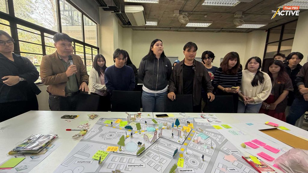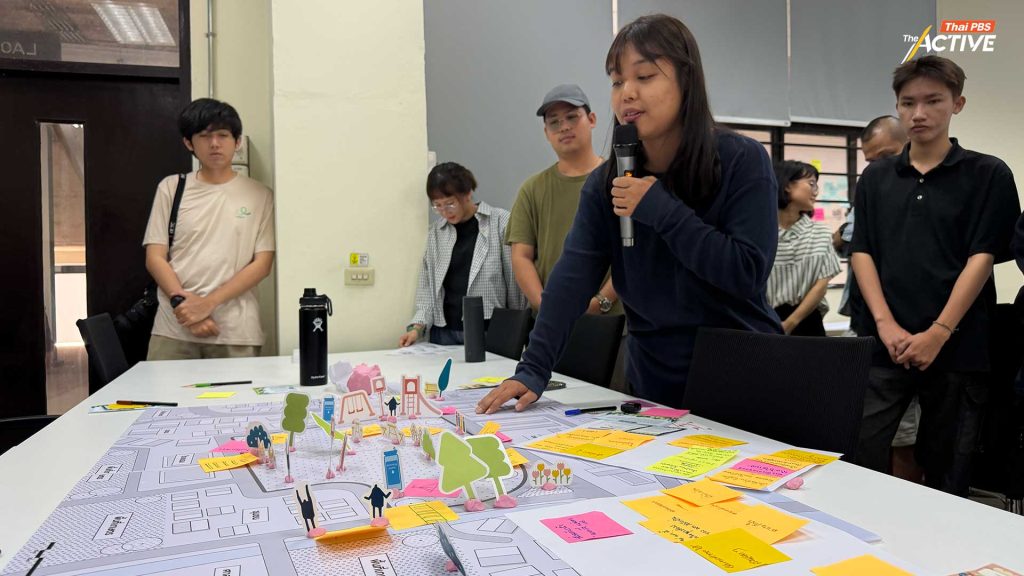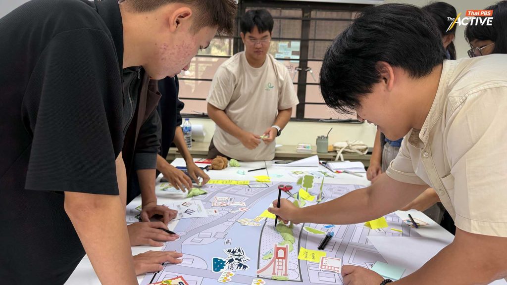 ในกิจกรรมเวิร์กชอป ผู้เข้าร่วมยังได้ทดลอง สวมบทบาท เพื่อทำความเข้าใจมุมมองของผู้มีส่วนได้ส่วนเสียที่แตกต่างกัน ไม่ว่าจะเป็นภาคเอกชนที่พร้อมสนับสนุน ภาครัฐที่มีกรอบนโยบายและงบประมาณ ภาคชุมชนที่มีความต้องการของคนในพื้นที่ รวมถึงภาควิชาการที่มีองค์ความรู้ ผู้เข้าร่วมได้ลองคิดและออกแบบพื้นที่ภายใต้โจทย์ที่ท้าทาย เช่น พื้นที่ที่มีปัญหาน้ำท่วม พื้นที่ที่ชุมชนยังไม่พร้อมต่อการพัฒนา หรือชุมชนที่มีทุนทางวัฒนธรรมและภูมิปัญญาเดิม เช่น ผลิตภัณฑ์ท้องถิ่นหรือ OTOP แต่กำลังเผชิญปัญหาคนรุ่นเก่าสูงอายุและขาดคนสืบต่อ