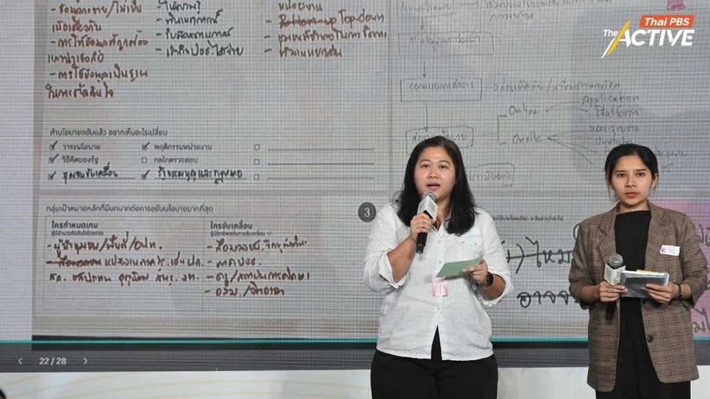 ทั้งนี้แต่ละกลุ่มยังได้คิดค้น ออกแบบ “การสื่อสารนโยบายสาธารณะ” ให้ข้อมูล หลักฐาน และเสียงของประชาชน กลายเป็นพลังที่ขยับการตัดสินใจเชิงนโยบายได้จริง โดยข้อสรุปจาก 7 กลุ่มประเด็นสำคัญ ที่ถูกนำเสนอมีดังนี้