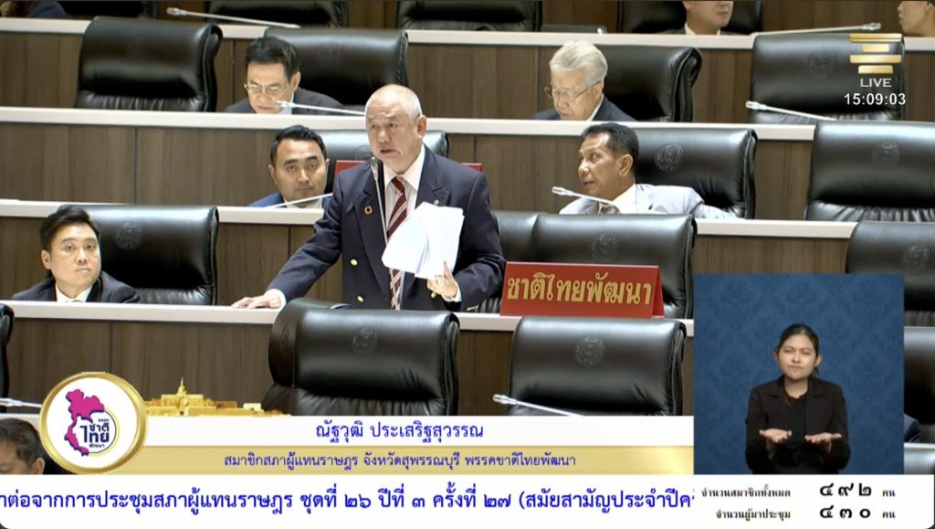 “ผมเห็นด้วยว่าอยากจะให้มีอากาศสะอาด เพราะลูกหลานของเราจะได้สุขภาพแข็งแรง แต่ความเป็นจริงมันเป็นไปได้ไหม ถ้าปฏิบัติไม่ได้ บังคับไม่ได้ ก่อให้เกิดความวุ่นวาย กระทบต่อธุรกิจ กระทบต่ออาชีพของพี่น้องเกษตรกร ท่านคำนึงหรือไม่ว่าถ้าเกษตรกรรมจะกระทบขนาดไหนกับ พ.ร.บ. ฉบับนี้”