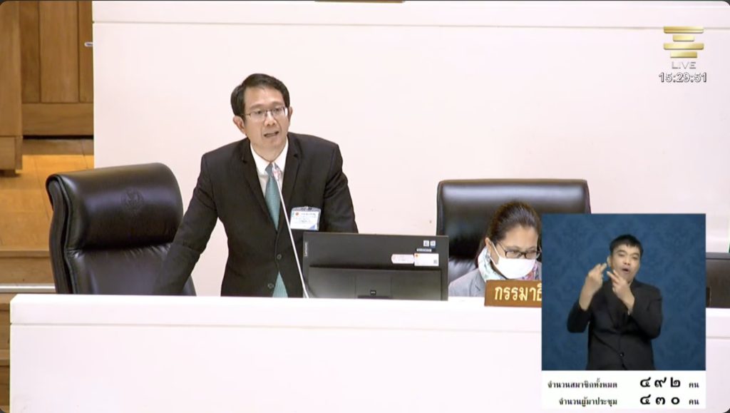 “สิ่งที่ผมสงวนไว้คือ ให้ตัดคำว่า ตามหลักเกณฑ์และเงื่อนไขตามที่รัฐมนตรีประกาศกำหนด โดยการเสนอของคณะกรรมการวิชาการ คือเรามองว่า ทางจังหวัดสามารถออกประกาศ Low Emission Zone ได้ด้วยตนเองเลย โดยที่ไม่ต้องรอให้รัฐมนตรีประกาศกำหนด”