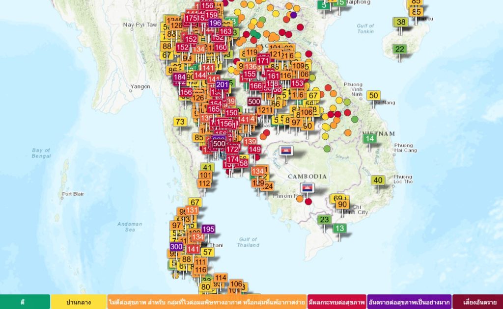 ขณะที่ รศ.วิษณุ อรรถวานิช อาจารย์ภาควิชาเศรษฐศาสตร์ คณะเศรษฐศาสตร์ มหาวิทยาลัยเกษตรศาสตร์ และ กรรมาธิการสามัญพิจารณาร่าง พ.ร.บ.บริหารจัดการเพื่ออากาศสะอาด พ.ศ. … โพสต์ข้อความ ว่า เช้านี้ (3 ธ.ค. 68) ฝุ่นพิษ PM2.5 (สารก่อมะเร็งกลุ่ม 1) สูงในระดับอันตรายต่อสุขภาพ (สีแดง) เกือบทั่วทุกพื้นที่ของกรุงเทพฯ และปริมณฑล หลายพื้นที่ในภาคเหนือ ภาคตะวันออกเฉียงเหนือ ภาคกลาง ภาคตะวันออก และภาคใต้ ค่าฝุ่นพิษก็สูงในระดับอันตรายต่อสุขภาพ