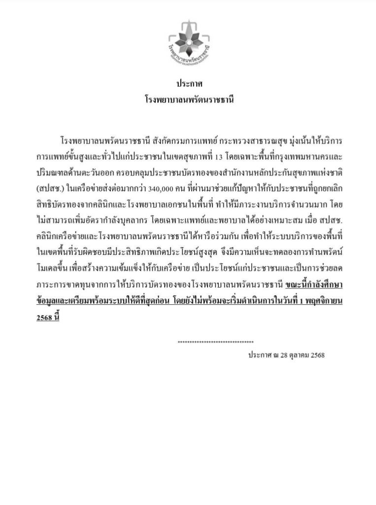 ตามที่รายการ Flash Talk EP.77 “งบไม่มา… แต่ผู้ป่วยยังรอ” (22 ต.ค. 68) นำเสนอแนวคิด นพรัตน์โมเดล จากตัวแทนคลินิกชุมชนอบอุ่น ซึ่งจะช่วยแก้ปัญหาใบส่งตัวนั้น