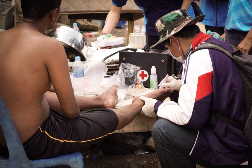 จากการประเมินพบว่า ประชาชนจำนวนมากมีอาการน้ำกัดเท้า และบาดแผลจากการทำความสะอาดบ้านหรือเดินลุยโคลน เช่น แผลติดเชื้อ แผลมีหนอง เล็บฉีก รวมทั้งความเสี่ยงโรคฉี่หนู ซึ่งพบได้มากในพื้นที่ที่มีน้ำขังและโคลนหลังน้ำลด ทีมเส้นด้ายจึงประสานกับคณะแพทยศาสตร์ ม.อ. โดยนักศึกษาโครงการ “แพทย์เดินดิน” ลงพื้นที่ร่วมกับแพทย์อาสา และเข้าปรึกษาผู้เชี่ยวชาญด้านระบาดวิทยา เพื่อจัดเตรียมยาที่จำเป็นต่อการป้องกันโรคฉี่หนูให้เพียงพอ