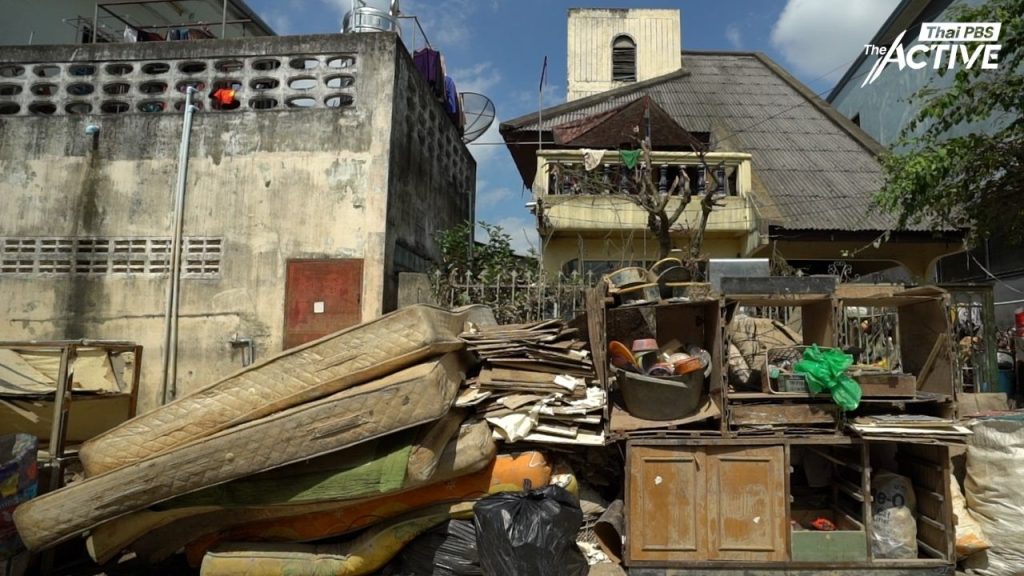 ส่วนที่ 2 คือ ขยะ ชาวบ้านที่นี่พยายามช่วยเหลือตัวเอง แต่ข้าวของเสียหาย เกือบ 100% จึงเกินกำลัง ขยะตอนนี้กองหน้าบ้านเริ่มส่งกลิ่นเหม็นแล้ว เป็นอีกปัญหาที่ต้องเร่งจัดการ
