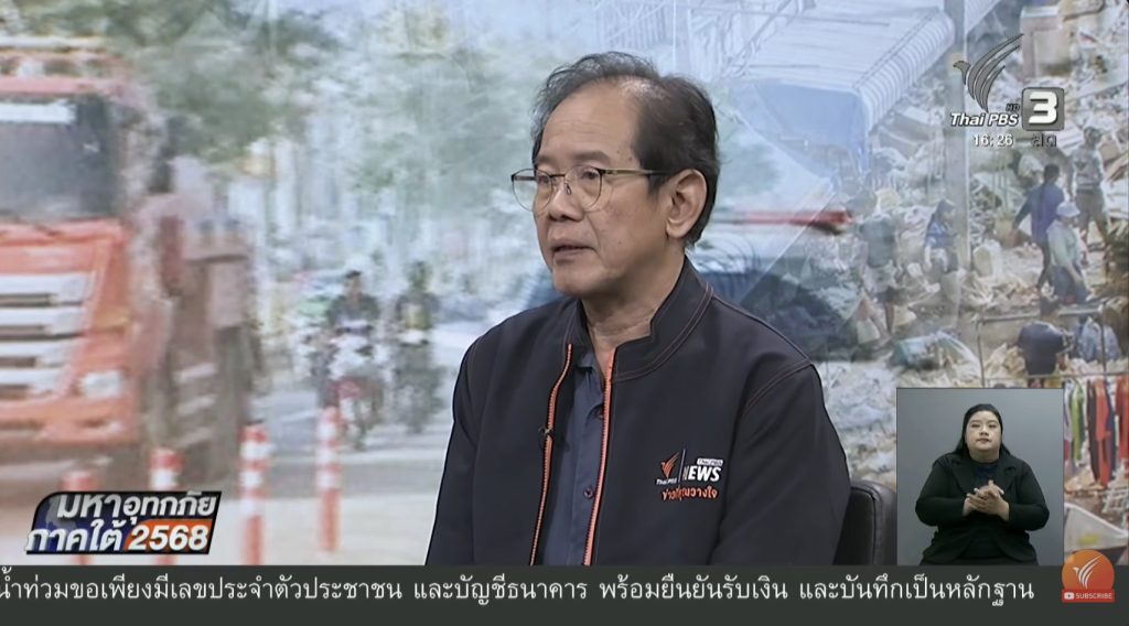 ผอ.ส.ส.ท. ยังย้ำว่า ในวิกฤติภัยพิบัติ ต้องทำงานโดยใช้ฐานข้อมูล และโฟกัสว่าในพื้นที่หาดใหญ่มีคนได้รับผลกระทบมากมาย เราควรโฟกัสไปที่กลุ่มไหน คือเป็นกลุ่มคนที่อาจจะยังได้รับความช่วยเหลือไม่ทั่วถึง ยกตัวอย่าง ของบริจาคที่ทำส่งไปตั้งใจไปให้ถึงมือกลุ่มเปราะบาง เช่น ชาติพันธุ์ แรงงานข้ามชาติ ที่โอกาสได้รับความช่วยเหลืออาจจะน้อย เป็นต้น