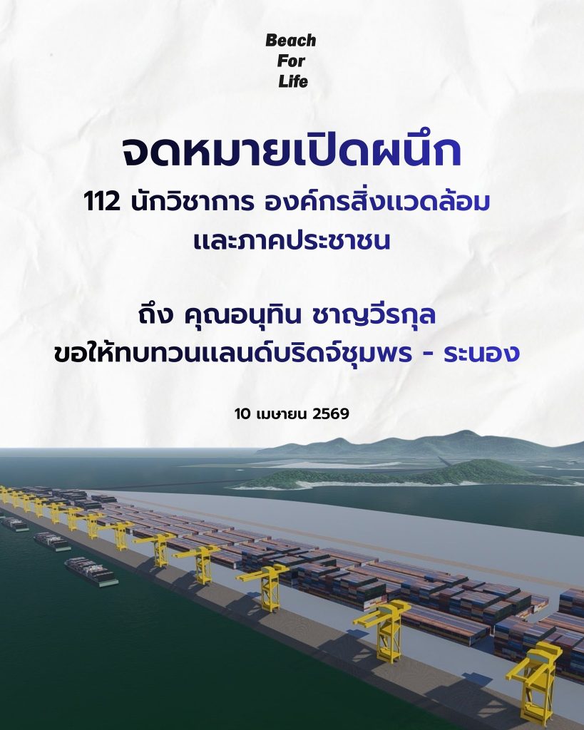 เมื่อวันที่ 10 เม.ย. 69 กลุ่มนักวิชาการ องค์กรทางสิ่งเเวดล้อม นักกิจกรรม เเละภาคประชาชน 112 รายชื่อ ได้ลงนามในจดหมายเปิดผนึกเรียกร้องไปยัง อนุทิน ชาญวีรกูล นายกรัฐมนตรี แสดงความจริงใจเเละความโปร่งใสต่อการผลักดันโครงการนี้ โดยการเปิดเผยรายงาน EHIA ทุกฉบับ ต่อสาธารณะเพื่อให้ผู้มีส่วนได้ส่วนเสียในโครงการได้รับรู้ ได้มีส่วนร่วมในการตรวจสอบรวมกัน รวมถึงขอให้รัฐบาลทบทวนและชะลอกระบวนการผลักดันโครงการ