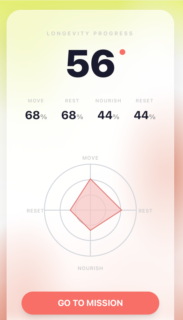 แอปฯ จะประมวลสุขภาพของเราออกมาเป็นค่า Longevity Score ที่เป็นรูปใยแมงมุม เผยให้เห็นถึงความสมดุลในชีวิตแต่ละด้าน ก่อนที่จะได้รับใบสั่งจ่ายยา ที่ Customize จำเพาะเจาะจงตามแต่ละบุคคล