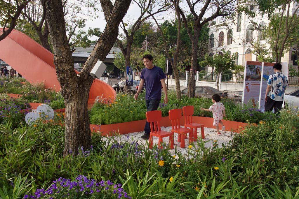 ผู้จัดหยิบยกเอาพื้นที่สำคัญอย่าง ย่านปากคลองตลาด-ทรงวาด ให้กลายเป็น สวนสุขภาวะ ที่มีทั้งนิทรรศการให้ความรู้ งานศิลปะ ดนตรีในสวน และกระบวนการมีส่วนร่วมในการพัฒนาพื้นที่ใต้สะพานพระปกเกล้า