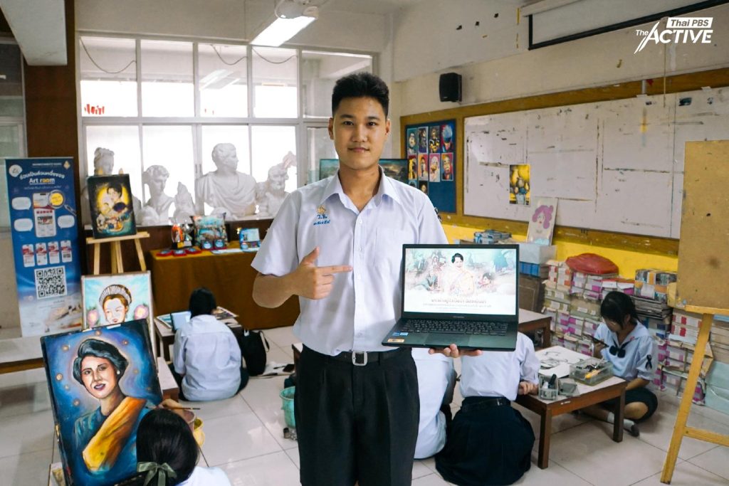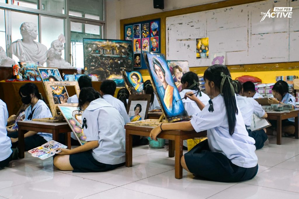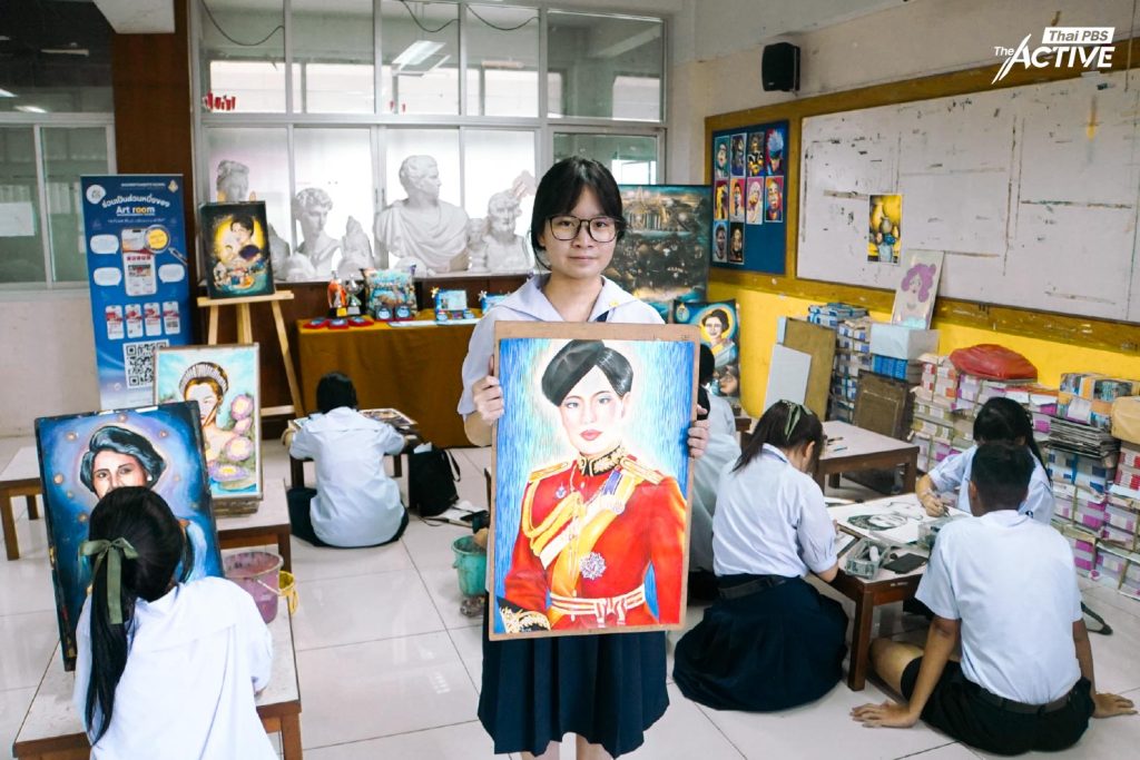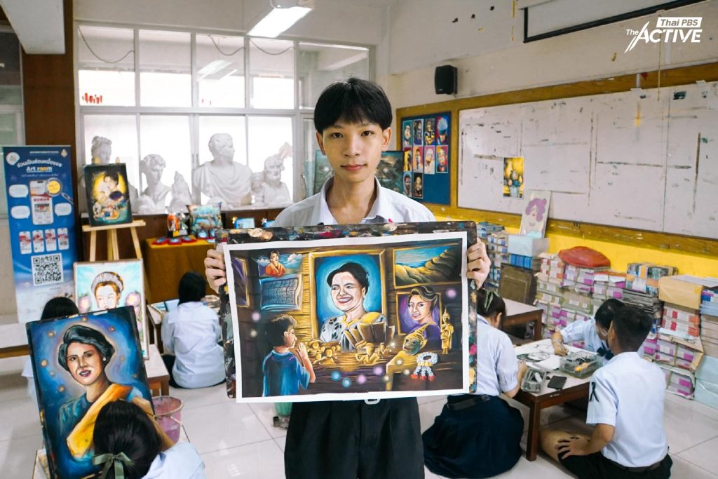 จากภาพจำสู่ภาพวาด เมื่อศิลปะเป็นเครื่องมือถ่ายทอดความรู้สึก แล้วประสบการณ์ร่วมของนักเรียนรุ่นหลังต่อโจทย์วาดภาพเฉลิมพระเกียรติสมเด็จพระบรมราชชนนีพันปีหลวง จะสะท้อนออกมาในรูปแบบใด The Active มีโอกาสพูดคุยกับนักเรียนในห้องเรียนวิชาศิลปะ โรงเรียนวชิรธรรมสาธิต เพื่อสำรวจมุมมอง และพื้นที่การแสดงออกผ่านงานทัศนศิลป์ของพวกเขา