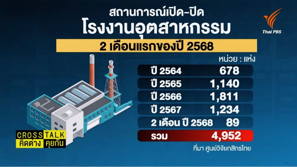 ขณะที่ อรมน ทรัพย์ทวีธรรม อธิบดีกรมพัฒนาธุรกิจการค้า กระทรวงพาณิชย์ เผยข้อมูลการจดทะเบียนตั้งธุรกิจใหม่ ในไตรมาสแรกของปี 2568 ลดลง 4.7% เมื่อเทียบกับช่วงเดียวกันของปีก่อนหน้า และมีการจดทะเบียนเลิกกิจการเพิ่มขึ้นถึง 10.6%