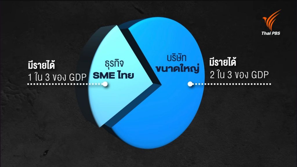 เหตุที่เป็นเช่นนี้ เพราะการคำนวณตัวเลข GDP นั้น เป็นการคิดจากค่าเฉลี่ยรายได้ของคนทั้งประเทศ ตั้งแต่คนที่รวยที่สุด ไปจนถึงคนที่จนที่สุด แต่เมื่อดูในรายละเอียดก็จะพบว่า ธุรกิจ SME ซึ่งมีมากกว่า 90% ของธุรกิจไทย มีรายได้เพียง 1 ใน 3 ของ GDP ขณะที่บริษัทขนาดใหญ่ที่มีอยู่ไม่เกิน 10% กลับสร้างรายได้กว่า 2 ใน 3 ของ GDP