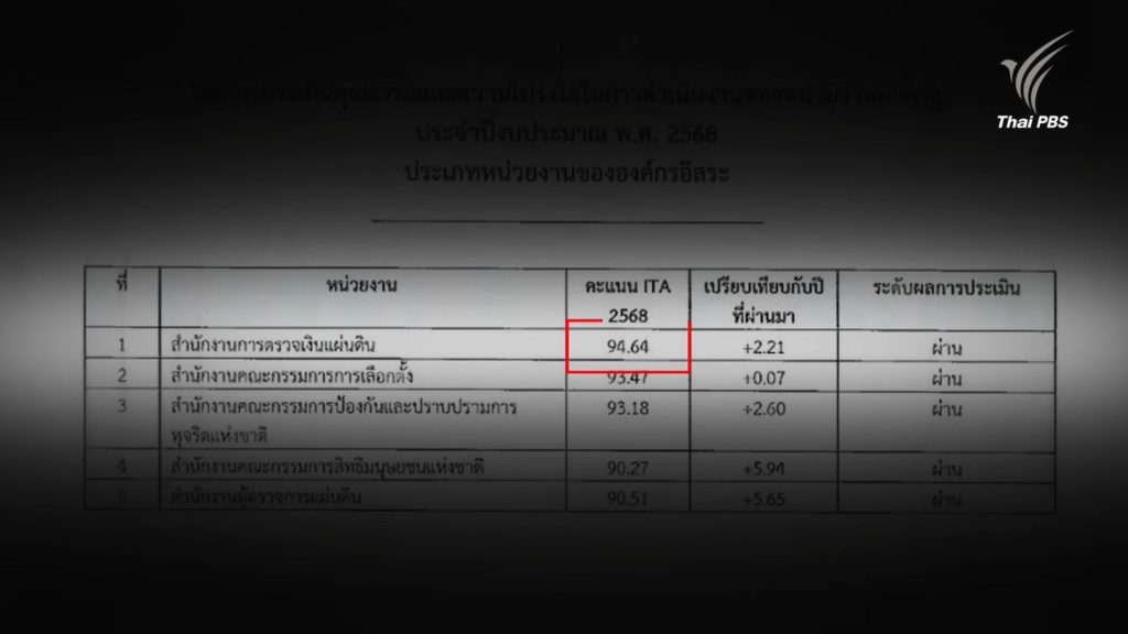 กลับมามองที่การตรวจสอบโดย สำนักงานคณะกรรมการป้องกันและปราบปรามการทุจริตแห่งชาติ (ป.ป.ช.) พบว่า สำนักงานตรวจเงินแผ่นดิน (สตง.) คว้าอันดับหนึ่ง ในหมวดองค์กรอิสระ จากการประเมินคุณธรรมและความโปร่งใสในการดำเนินงานของหน่วยงานภาครัฐของ Integrity and transparency Assessment (ITA) ในปี 2568 โดยได้คะแนนสูงถึง 94.64 คะแนน และเป็นอันดับ 10 จาก 8,000 กว่าองค์กรรัฐทั่วประเทศ