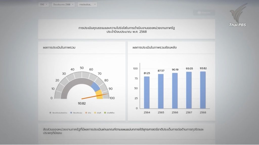 นอกจากนี้ ผลการประเมินคุณธรรมและความโปร่งใสในการดำเนินงานของหน่วยงานภาครัฐระดับปี 2568 ภาพรวมมีคะแนนเฉลี่ยเพิ่มขึ้น อยู่ที่ 93.82 คะแนน โดยคะแนนความโปร่งใสเพิ่มขึ้น 0.77 คะแนน และ 7,832 หน่วยงาน ผ่านเกณฑ์การประเมิน ด้วยคะแนนมากกว่า 85 คิดเป็น 94.17%
