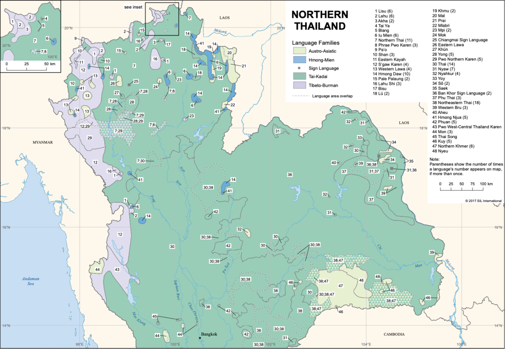 ความเป็นรัฐรวมศูนย์ และสิ่งประดิษฐ์ทางราชการทำให้คนไทยส่วนใหญ่เข้าใจ ว่าสังคมไทยเป็นสังคม ภาษาเดียว ทั้งที่จริง ๆ แล้วตาม ข้อมูลโดย Ethnolouge อ้างถึงในรายงานยูนิเซฟ พบว่า ประเทศไทยมีภาษามากถึง 72 กลุ่มภาษา จำแนกได้เป็น 5 ตระกูลภาษา เช่น ภาษามลายูถิ่น, ภาษาเขมรถิ่นไทย, ภาษากะเหรี่ยง เป็นต้น ซึ่งล้วนเป็นชุมชนภาษาขนาดใหญ่ที่มีผู้คนใช้สื่อสารกันนับแสนคน โดยแผนที่ด้านล่างแสดงให้เห็นว่า ภาษาชาติพันธุ์เหล่านี้ส่วนใหญ่จะพบตามพื้นที่ชายแดนของประเทศไทย