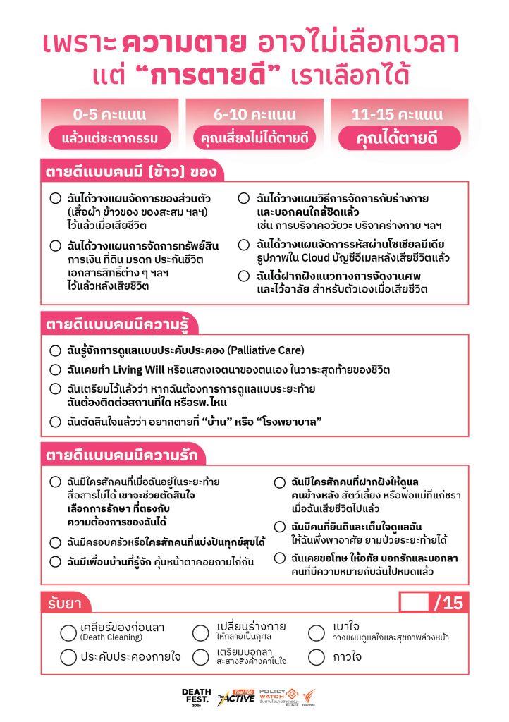 มีองค์ความรู้จำนวนนหนึ่งที่จะช่วยให้คุณตายดีได้ ลองสำรวจว่าคุณเตรียมข้อไหนไว้แล้วบ้าง ?