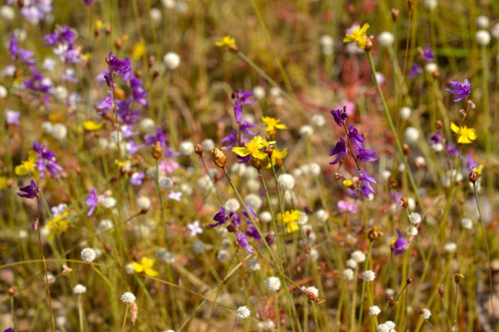 - มีชื่อเรียกที่แตกต่างไปแต่ละท้องถิ่น เช่น หญ้าข้าวก่ำน้อย หญ้าเข็ม หรือดอกขมิ้น เป็นพืชล้มลุกกินแมลงที่พบตามพื้นที่โล่งและชุ่มชื้นในภาคตะวันออกเฉียงเหนือตอนบน ดอกเป็นช่อสีม่วงเข้ม มีใบที่เปลี่ยนเป็นถุงสำหรับดักจับแมงขนาดเล็ก ออกดอกช่วงตุลาคม – ธันวาคม